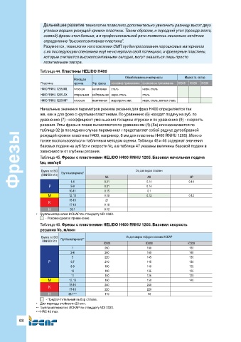 Таблица 46. Фрезы с пластинами HELIDO H400 RNHU 1205. Базовая скорость