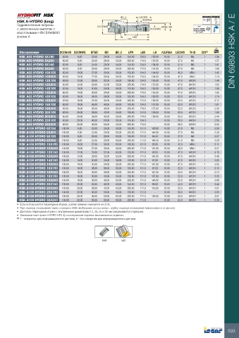 Обозначение         DCONMS DCONWS  BTED   BD    BD_2  LPR   LBX   LB   ADJRGA  LSCWS  THID  CDI (1)  kg    DIN 69893 HSK A / E