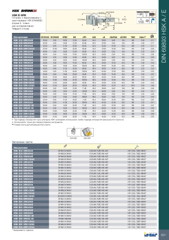 Обозначение        DCONMS DCONWS  BTED    BD    LPR    LBX    LB   ADJRGA  LSCWS  THID  Ключ (1)  kg       DIN 69893 HSK A / E