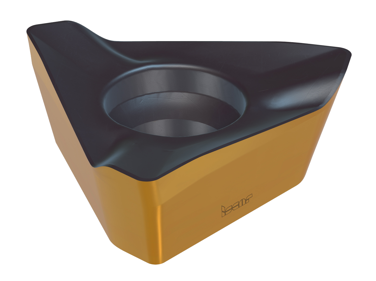 Para maximizar a eficiência dos carbonetos cimentados, uma nova rodada de desenvolvimento de pastilhas foi iniciada. A adaptação bem-sucedida da aresta de corte helicoidal para pastilhas triangulares abordou essa limitação. O conceito de pastilha triangular não apenas fornece três arestas de corte, mas também oferece benefícios adicionais. Quando comparado com outras formas com comprimento de aresta de corte igual, a forma triangular fornece uma área central mais ampla. Isso permite um aumento no tamanho do furo central, permitindo o uso de um parafuso de fixação com uma rosca maior. Como resultado, a fixação da pastilha é fortalecida, contribuindo para a durabilidade geral do conjunto de ferramentas de fresagem. Além disso, a forma triangular melhora a capacidade de corte de rampa descendente.